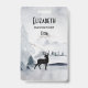 Placa de nome personalizada com uma imagem de aquarela com uma silhueta de rena preta em pé entre alguns pinheiros. Esquema de cores neutras preto, cinza e branco.