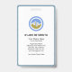 Um design de citação de aspas azuis elegante é encapsulado por uma borda azul clara nas bordas externas do emblema.