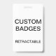 O costume imprimiu personalizou 3,38" x 2,13" modelo RETRÁTIL VERTICAL do vazio do CRACHÁ do GRAMPO. O design, cria, faz seus próprios. Sua foto, imagem, texto, logotipo, gráficos na borda-à-borda da cor completa imprime na parte dianteira e no traseiro, no horizontal ou em vertical. Feito do plástico do PVC, os bens, não se desvanecerão nem não se rasgarão. Grampo retrátil, do metal, colar da correia, ou apenas crachá.
