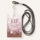 Um elegante VIP de vírgula, com todos os acessos, passa crachá de evento VIP com tom rosa cor-de-rosa-brilho e rosa cor-de-rosa. Adicione o nome e a data do evento.