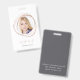 Adicione uma foto a este crachá chic para criar nomes de etiqueta personalizados para seus funcionários. Uma falsa borda rosa dourada rodeia sua foto, com nome e título embaixo. Adicione seu endereço comercial ou informações adicionais ao verso em branco na cinza elegante.