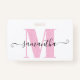 Um monograma de rosas claro ousado com bolinhas brancas, em conjunto com um nome de assinatura de troca cúbica e giro para crachás de funcionários. Na frente, mantenha a cor de fundo branca. Mas atrás você está livre para adicionar texto ou qualquer cor de fundo.