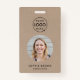 Crachá de ID corporativo kraft simples e na moda, que pode ser facilmente personalizado com a foto de ID do funcionário, nome, posição, logotipo da empresa, detalhes comerciais e código QR ou código de barras. A design na moda apresenta uma tipografia moderna minimalista e um cartaz em bloco nas cinzas de pedra para se destacar da multidão.