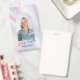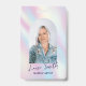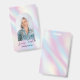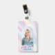 Crachá holográfico de identificação de design com fonte moderna de script e fotografia de desenho. Este crachá de funcionários femininos com foto apresenta um elegante plano de fundo roxo e azul e espaço para seu nome ou logotipo. Perfeito para estéticos, pregadores, salões de cabelo, maquiadores e muito mais!