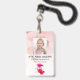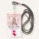 Crachá de Funcionário do Nail Salon ID de Foto Moderno. Design com rosa de fundo ouro e cor-de-rosa, fotografia do solteiro, firma, profissão e nome . Personalize com seus detalhes de contato. Os crachás de ID modernos simplificam a identificação de funcionários por parte dos clientes e clientes. Para editar este modelo, clique em personalizar mais.