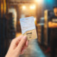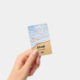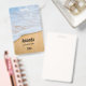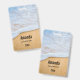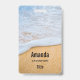 Nome de etiqueta com uma fotografia de uma praia ouro marrom arenosa com surf branco de espuma.