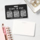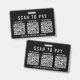 Modern black badge for your business to collect payments on the go with the option to upload 3 QR codes for different contactless payment apps for customers to scan for payments. Upload your QR codes and add your business name in simple white lettering.