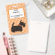 Crachá personalizado mostrando seu amante escocês terrier! Scottie dog está vestindo um arco laranja para combinar com o fundo laranja herringbone. Personalize-o para dizer o que quiser. Você dirige uma organização de resgate de cães, personalize seus acessórios.