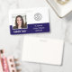 Personalize estes crachás horizontais com uma foto e nome do funcionário, juntamente com um campo de modelo para texto personalizado adicional para número de ID do funcionário, cargo ou título, localização ou outros dados importantes. Adicione seu logotipo no topo. Campo de texto personalizado adicional localizado no verso para informações de devolução ou outros detalhes.
