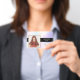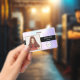 Elegante crachá de segurança de identificação de foto de funcionário que apresenta um plano de fundo holográfico, gradiente de arco-íris, iridescente. Projetado por Thisnotme©