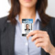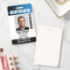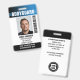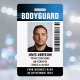 Crachá de guarda-costas profissional com foto de perfil e logotipo da empresa. Este modelo editável pode ser personalizado com uma foto, nome, cargo, número de identificação, nome da empresa, data de validade, código de barras e logotipo da empresa para branding. Um design moderno com listras em gradiente e uma fonte limpa. Oferece texto totalmente personalizável para se adequar à marca da sua empresa. Ideal para vários locais de trabalho e funções, como guarda-costas pessoal, segurança, oficial de proteção próxima, segurança corporativa privada, segurança de loja, porteiro oficial, equipe de eventos, funcionário de varejo, equipe médica, passe de pequenas empresas, crachás de nome de conferência e muito mais! Cores impressas: preto, branco e azul. Compre na coleção para mais ideias de produtos de segurança populares e suprimentos à venda online.