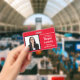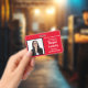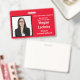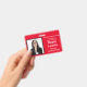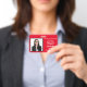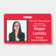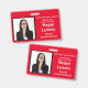 Crachá de Participantes do Seminário Horizontal em Vermelho e Branco. Todos os elementos podem ser alterados, incluindo: foto, nome do seminário, localização e data do seminário, nome do participante, título do participante e nome da empresa. Orientação horizontal. Slot no topo para um pátio. Também disponível na orientação vertical nesta loja.