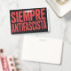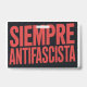 Esta imagem exibe um poderoso slogan político em espanhol, "SIEMPRE ANTIFASCISTA", contra um fundo preto austero. O texto, que significa "SEMPRE ANTIFASCISTA", é apresentado em uma tipografia vermelha ousada e desgastada, sugerindo um compromisso firme e duradouro com o antifascismo. É uma declaração visual marcante de solidariedade ideológica e oposição às ideologias fascistas