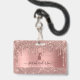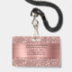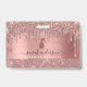 Crachá de identificação de cílios elegantes e modernos apresenta fundo de folha de rosa dourada falsa e gotas de brilho (nota: nenhum brilho real será usado), e ícone de spray de limpeza em cor rosa dourada. Perfeito para serviços comerciais ou residenciais de limpeza, governanta, serviço de empregada doméstica ou suprimentos de limpeza.