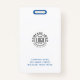 Crachá Seu logotipo aqui, com a mínima identidade azul e