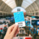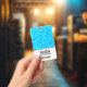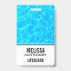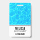 Nome crachá com uma fotografia de água piscina azul clara, com reflexões brilhantes.