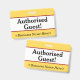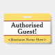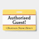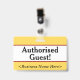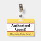 Este design de crachá simples apresenta a mensagem "Convidado Autorizado!", e um nome de empresa personalizável ou outra mensagem personalizada. Um crachá como este pode ser usado para indicar que um visitante ou convidado em um local de trabalho está autorizado a estar lá. [~Z0000307]