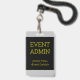 Este design de crachá minimalista apresenta a mensagem "ADMIN DE EVENTOS". Um crachá como este poderia ser usado para indicar que o portador é um representante oficial em um evento. [~Z0000307]