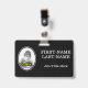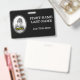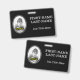 Características deste design simples do crachá uma imagem customizável do retrato dos funcionarios ou do empregado, junto com um nome e uma posição personalizados. Os crachás como estes podiam talvez ser usados por empregados de um negócio.