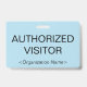 Este design básico de crachá apresenta a mensagem "VISITANTE AUTORIZADO" e um nome de empresa personalizável ou outra mensagem personalizada. Um crachá como este pode ser usado para identificar que alguém em um local de trabalho ou empresa é um convidado/visitante autorizado. [~Z0000307]