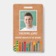 This photo ID name badge is perfect for ski slopes, ski resorts and other skiing related businesses. It's ready to be personalized with a photo, an employee name and a business name. It features my illustrations of vintage skis set against a light brown background with the look of a ski lodge's wood siding.