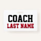 Adicione seu nome em letras vermelhas com uma sombra de queda traseira para personalizar este boné. a palavra COACH em letras negras também é um modelo se você quiser alterar o título do membro da equipe.