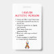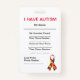 Este produto deixa todos saber que seu criança, parente, ou amigo estão com o autismo caso que obtem perdida e não pode falar para se. A informações de contacto da emergência pode ser adicionada em um lado e há uma explicação de comportamentos autísticos comuns no outro lado.