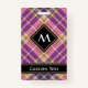 Design de cor rosa, ouro amarelo e azul-tartan. Um padrão perfeito. Texto personalizado e monograma.