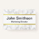 Este crachá de nome de mármore branco tem texto preto e uma linha de ouro falsa acima e abaixo do texto. Personalize-o com seu texto, como nome e título.