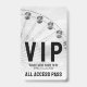 Este crachá VIP apresenta uma versão em preto e branco de uma cena do sol sonhadora com uma roda-furo no fundo, dando a ela uma aparência ousada e na moda perfeita para um concerto ou festival ao ar livre. A paleta monocromática acrescenta uma sensação moderna e suja enquanto mantinha a vibração do estilo Coachella. O design usa fontes simples, em negrito e brancas, com "VIP" no topo e no espaço abaixo para seu nome de evento, data e "All Access Pass". O mesmo design aparece na frente e atrás para um acabamento coeso e polido. Você pode personalizar completamente o texto e até mesmo trocar a foto para melhor corresponder ao estilo do seu evento.