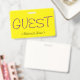 Este design moderno apresenta a mensagem "CONVIDADO" e um nome personalizável da empresa ou outra mensagem personalizada. Um crachá como este poderia ser usado para indicar que um visitante ou convidado no local de trabalho pode estar lá. [~Z0000307]