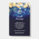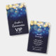 Um elegante design de luzes azuis, marinhos, desfocadas douradas, este convite de aniversário Quinceañera e o cartão VIP são impressos num único crachá de plástico - com ou sem um jardim. CORRESPONDENDO a itens na nossa loja.