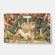 Essa tapeçaria unicórnica é uma reprodução aprimorada da tapeçaria "O Unicórnio é Encontrado", que é a segunda tapeçaria de uma série de sete tapeçarias medievais que mostra o mítico unicórnio. As tapeçarias foram criadas de 1495-1505. Essa tapeçaria do Unicórnio mostra um grupo de nobres medievais e caçadores, além de todos os tipos de leões e leopardos ferozes. Há um unicórnio na frente, um lindo unicórnio branco, que tem sua buzina apontada para baixo enquanto se ajoelha. Há uma fonte medieval entre o unicórnio e os caçadores.