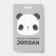 Este design apresenta um belo ursinho panda com nome personalizado no estilo de fonte sans serif moderno da cinza em fundo de cinza de luz.