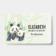 Crachá com uma ilustração de aquarela fofinha com uma mãe branca e preta e um urso panda bebê se amontoando juntos. A mamãe está segurando seu filhote entre alguns caules verdes de bambu.