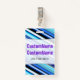 Características deste design do crachá um teste padrão das linhas ou de várias máscaras coloridas listradas do azul. Igualmente caracteriza um nome customizável no texto colorido roxo dentro de uma área colorida luz. Há igualmente uma mensagem customizável sob o nome do esse poderia mostrar a informação tal como uma posição, ou uma profissão, ou um negócio/nome da empresa. [~Z0000176]