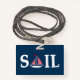 Ilustração de design de texto de vela com decoração de barco à vela em fundo azul escuro. É possível mudar a cor de fundo e adicionar uma diferente à design com sua escolha.