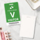 Crachá de visitante vertical com um simples design de branco contra fundo verde. Um V branco grande facilita o reconhecimento rápido do visitante como tal. Personalize com o logotipo da sua empresa e um código de bar.