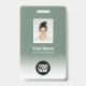 Personalize facilmente este Crachá de Nome de Funcionário Personalizado com Foto, Código de Bar de Digitalização e logotipo de empresa com um gradiente branco em cores verdes elegantes. Um simples design de nomes de etiqueta de identificação de segurança personalizado para empresas em cinzas neutras minimalistas e cores brancas totalmente personalizáveis nos tamanhos frontal e traseiro, fontes básicas e modernas sans-serif e uma aparência profissional e clara. Os crachás de identificação estão disponíveis com jardim, clipe de metal ou com retratável. Sem ordem mínima.