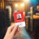Crachá vermelho de funcionário personalizado com f