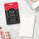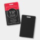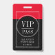 Modelo de crachá de evento VIP vermelho e preto com acesso total. Substitua pelo nome e data do seu evento. Um crachá de contraste ousado que chama a sua atenção.