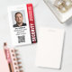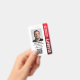 Crachá de guarda de segurança profissional com foto de perfil e logotipo da empresa. Este modelo editável pode ser personalizado com uma foto, nome, cargo, número de identificação, empresa, data de expiração, código QR e logotipo para marcas. Um design moderno com faixas de gradiente e uma fonte limpa. Ele oferece texto totalmente personalizável para ajustado da marca de sua empresa. Ideal para vários locais de trabalho e funções, como guarda de segurança, oficial de proteção próximo, segurança privada corporativa, segurança de loja, guarda pessoal, porteiro oficial, equipe de eventos, assistentes de varejo, funcionarios médico, passe para pequenas empresas, nomes de etiqueta de conferência e muito mais! Cores impressas: preto, branco e vermelho. Compre a coleção para obter ideias e suprimentos de produtos de segurança mais populares para venda on-line.