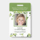 Crachá com foto, nome e nome da empresa. Fundo da Folhagem Verde.