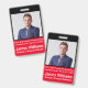 Crachá de identificação fotográfica completamente personalizável com nome, cargo, empresa e detalhes do evento todos mutáveis. É extremamente irritante quando você está em uma convenção, seminário, simpósio ou reunião com seu crachá virado para trás! Neste crachá, não importa para onde o cordão esteja voltado, todas as suas informações ainda estarão visíveis. Não é mais necessário verificar constantemente se o seu crachá está voltado para fora!