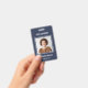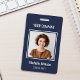 Mostre sua equipe com um design de crachá vertical profissional e atemporal. O sofisticado fundo azul-marinho profundo fornece uma aparência polida que enquadra elegantemente a foto de um funcionário e detalhes essenciais. Este layout minimalista e limpo cria uma impressão profissional, perfeito para manter uma identidade corporativa unificada e reconhecível.