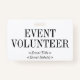 Este crachá de estilo clássico apresenta a mensagem "EVENT VOLUNTEER". Um crachá como este poderia talvez ser usado para mostrar que o usuário é um representante oficial em um evento. [~Z0000307]