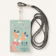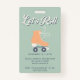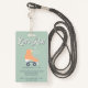 Convite de aniversário de patinagem verde de sábado divertido VIP "All Access" e crachá de festa para qualquer idade com "Vamos Roll!" em um roteiro branco, uma ilustração retrorinspirada de skates de roletes laranja claros em uma garota vestindo meias de tubos riscados rosa e uma moderna tipografia azul-rosa. A frente serve como crachá para as meninas vestirem durante a festa. Adicione os detalhes do convite no verso.