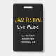 Personalize seu evento musical com crachás verticais VIP/All Access Pass. Músico de Jazz estilizado com imagem de chifre. Texto de ouro nítido sobre fundo preto para efeito máximo. Todos os detalhes na parte frontal e traseira podem ser personalizados ou removidos, incluindo cores, fontes e imagens.