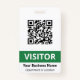 Crachá de visitante vertical com um código qr, VISITOR em letras brancas limpas contra uma faixa verde, e seu nome comercial e departamento ou local. Todo texto é personalizável. Crachá de visitante de código QR verde e branco para sua empresa.