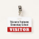 Preencha o nome da escola e altere a cor de fundo para fazer um crachá de identificação personalizado para os visitantes.